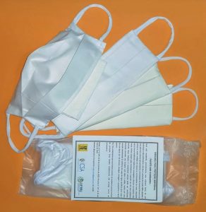 Inicialmente, as máscaras eram apenas confeccionadas em Tecido Não Tecido (TNT), o que lhes confere a caraterística de uso único. A escolha do TNT se deu em função de seu baixo custo, disponibilidade no mercado regional e pela sua facilidade de manejo, pois é uma matéria-prima que não desfia e facilita a costura. No entanto, as máscaras desse material não podem ser reutilizadas, tendo alto impacto na geração de lixo. Ademais, se não forem descartadas em saco plástico lacrado, as máscaras de TNT podem contribuir para a disseminação da Covid-19.