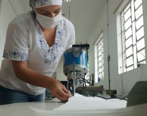 No total, de 2 de abril a 5 de maio, foram cortadas 5.200 máscaras de TNT e 1.311 de tecido 100% algodão, resultando em um quantitativo superior a 6.500 máscaras, parte delas ainda em processo de confecção e higienização.